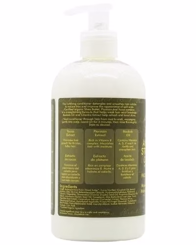 This restorative conditioner untangles and smoothes the cuticles of the hair to reduce frizz and improve the appearance of split ends. Organically grown shea butter, platain and yucca together form a fortifying formula that helps weak hair resist leaking. Baobab oil and coriander extract refresh and increase the shine.