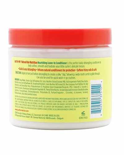 Just For Me Natural Hair Nourishing Leave-in Conditioner Formulated with Coconut Milk, Shea Butter, Vitamin E and Sunflower Oil, for enhanced moisturizing and conditioning.