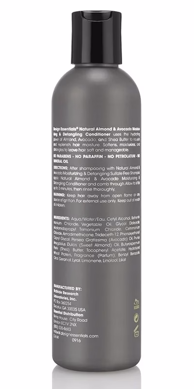 Design Essentials Almond & Avocado Moisturizing & Detangling Conditioner uses the hydrating power of Almond, Avocado and Shea Butter to nourish and replenish any moisture that your curls may be lacking to reduce the appearance of dryness, frizz, and breakage.