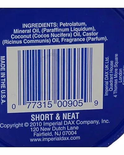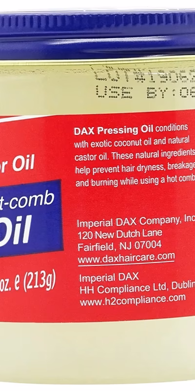 DAX Pressing Oil is a soft, nourishing pomade with petroleum jelly, coconut oil, castor oil and a mild coconut scent. The DAX Pressing Oil protects the hair from drying out and burning with a flat iron or a curling iron. The natural oils also prevent hair breakage and help with split ends.