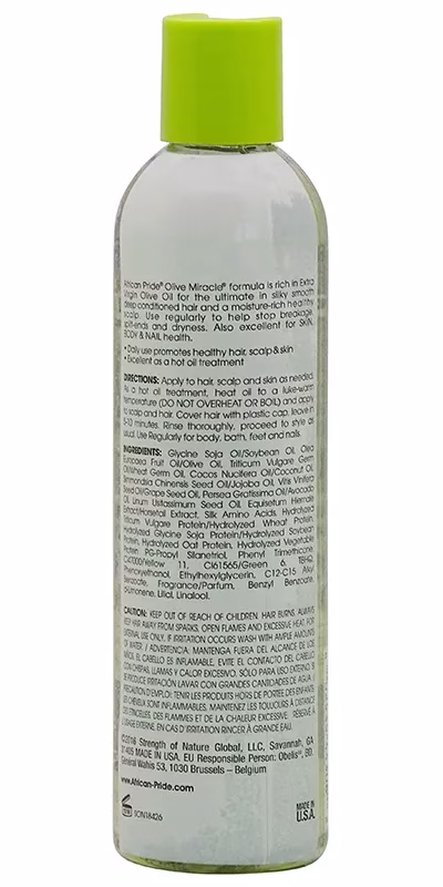 €8.99Promotes strong, healthy, and growing hair, even when braided. The added moisture nourishes your hair and relieves the stress of pulling that is commonly associated with braids. It also soothes the itching and eases braid tightness immediately after braiding. Helps against hair loss and hair loss. Gives the hair a fabulous fragrance. Promotes strong, healthy and shiny hair. Ideal for natural or synthetic hair. Helps with breakage, split ends and dryness. Repairs dry, damaged hair. Feather-light, moisturizing formula. The African Pride Olive Miracle formula is rich in extra virgin olive oil for the ultimate in silky smooth, deeply conditioned hair and a moisturized, healthy scalp. Regular use significantly reduces breakage, split ends and dryness. How to use: Spray on scalp immediately after braiding hair. Use daily for best results. Spray on scalp and braids as needed.