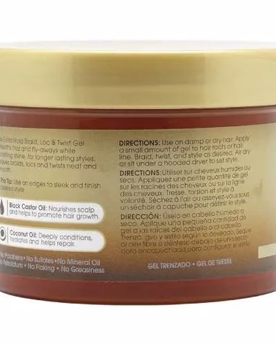 €7.99African Pride Black Castor Miracle Extra Hold Braid Loc & Twist Gel creates part line, tames frizz and smooths edges without stickiness.