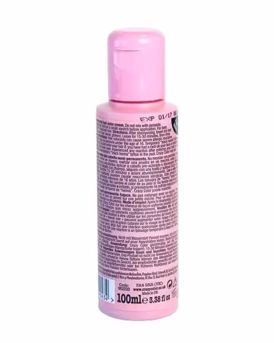 Crazy Color semi-permanent hair dyes creams are presented in a pot of easy operation whose content is 100 ml and pink. Not composited with peroxide. To ensure that the color is as expected, do a test on a lock bef ore the application. For best results, apply to hair pre-aclarado or bleached. & nbsp;