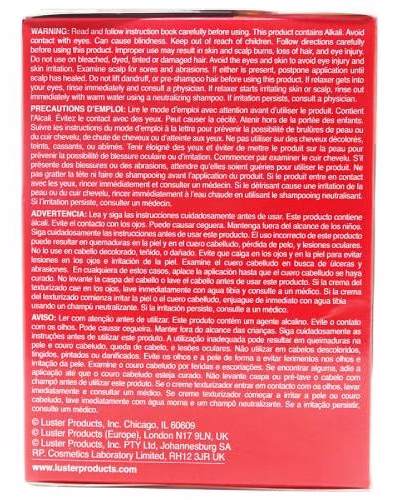 Read And follow instruction book carefully before using. This product contains sodium hydroxide (lye). Keep out of reach Of children. Follow directions carefully before using this product. Improper use may result in skin and scalp burns, loss of hair, and