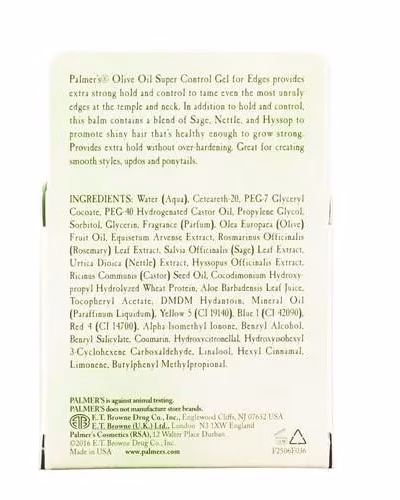This Olive Oil Gel provides extra strong hold and control to tame even the most unruly edges at the temple and neck. In addition to hold and control, this balm contains Botanical Scalp Complex to promote shiny hair that’s healthy enough to grow strong. Provides extra hold without over-hardening. Great for creating smooth styles , updos and ponytails.Creates glossy shine on all hair types without any sticky residue.