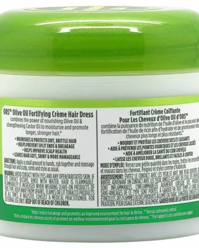 How to use: Apply sparingly to the entire scalp. Massage scalp and comb or brush hair to distribute the crème throughout the hair shaft. For night-time hair care, apply a small amount of Olive Oil Crème Hair Dress to the ends of the hair. Apply a liberal amount to natural hair as needed.