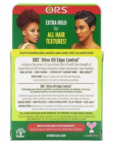 Organic Root Stimulator Olive Oil Edge Control Hair Gel by Namaste Labs. Organic Root Stimulator OLIVE OIL EDGE CONTROL slicks and holds down edges while adding shine and moisture to the hair. This non-sticky, non-greasy formula provides excellent hold without hardening the hair.