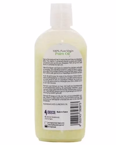 Palm oil for the body and hair. It gives moisture and has an antioxidant effect. The vitamin E it contains ensures a young, healthy complexion and can make scars disappear. Palm oil can be used alone or mixed for hair care.