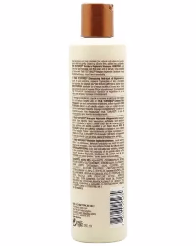 Mizani True Textures Moisture Replenish Shampoo Retain moisture and maintain the natural curl pattern for a touchable texture. Use: Apply to wet hair and massage into scalp until it foams. Rinse it out completely, then use True Textur e Moisture Replenish Conditioner. In the event of contact with the eyes, rinse immediately.
