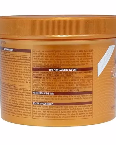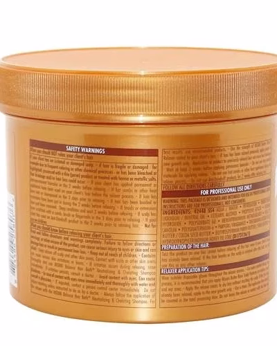 With an ultra-moisturizing blend of cocoa butter, shea butter and honey, the Butter Blend Relaxer System has always offered unsurpassed protection and intensive care. The NEW technology improves the performance of the Butter Blend Relaxer while maintaining the fiber integrity of the hair. A sodium hydroxide relaxer with cocoa butter, shea butter and honey. The hair is smoothed, strengthened and looks healthy. Available in different strengths.