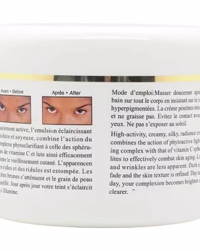 The highly effective, creamy, silky, radiant cream combines the effects of the phytoactive lightning complex with that of spherulites to effectively counteract skin aging. Lines and wrinkles are less visible. Dark spots fade and the complexion is refined. Day by day, your complexion becomes brighter and clearer.