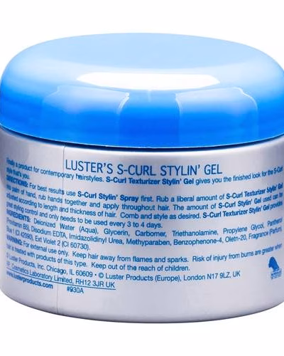 Luster’s S Curl Texturizer Stylin Gel is a product for your contemporary hair styles. S Curl Texturizer Styler Gel gives you the finished look for the S Curl style that’s you. Directions for best results are use S Curl Texturizer Stylin s pray first. Rub a liberal amount of S Curl Texturizer Stylin Gel into palm of ha nd , rub hands together and apply throughout hair. The amount of S-Curl Texturizer Stylin Gel used can be adjusted according to length and thickness of hair. Comb and style as desired. S-Curl Texturizer Stylin Gel provides great styling control and only needs to be used every 3 to 4 days.