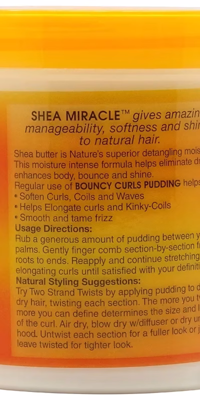 Instructions: Cut hair, apply a small amount on hands, rub together, work product into dry or damp hair. Do not rinse. Style as desired. Perfect for: twist-outs, braid-outs, finger coils, rod sets and wash and gos.