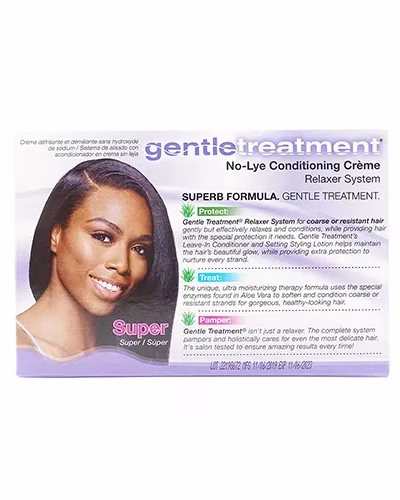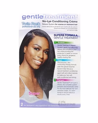 The exclusive, ultra-moisturizing Therapy formula of Gentle Treatment No-Lye Conditioning Creme Relaxer uses the special enzymes found in Aloe Vera as a natu ral treatment conditioning agent with anti-inflammatories to make your hair soft , well-conditioned and strong. Gentle Treatment isn’t just a relaxer, the complete system pampers and holistically cares for the most delicate hair and sensitiv e scalps. It’s salon tested to ensure fabulous results every time.