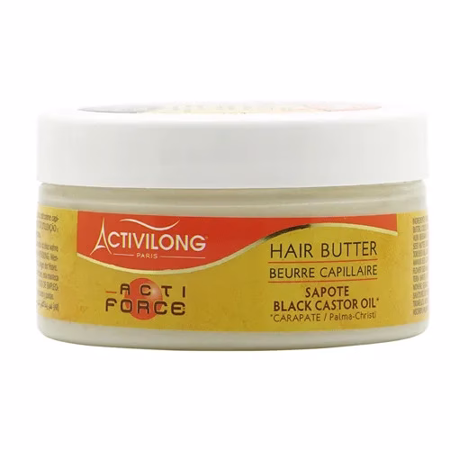 The Actiforce Hair Butter, made of Black Castor and Sapote o ils, nourishes and protects the hair but not only, it also seals the hydration t o maintain water into the hair fiber.