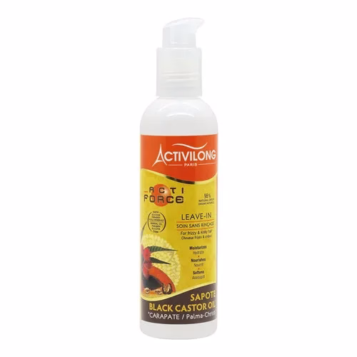 Acti Force Black Castor Oil Leave In This cream without conditioner is based on a mixture of Jamaican castor oil and sapote oil. It covers the hair and provides it with nutrients, moisture, strength and vitality without leaving any oily residue.