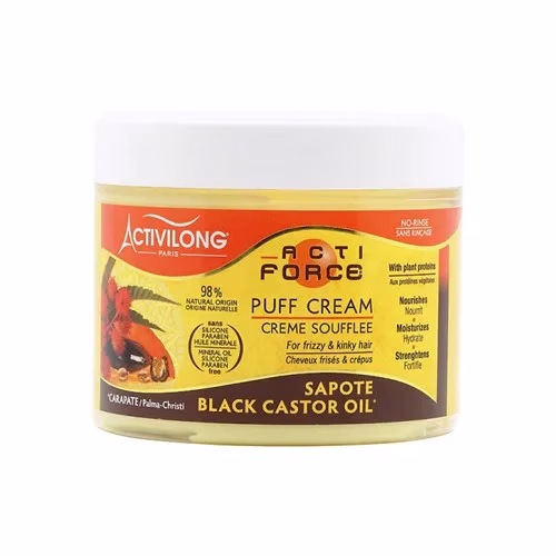 The Actiforce Puff Cream, enriched in plant proteins, gives strength and resistance to frizzy and kinky hair without burdening them. No rinse, its creamy texture wraps the hair with softness and moisture.