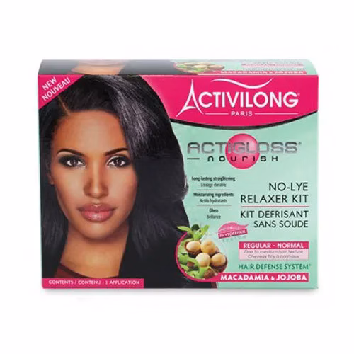 For medium hair texture. No lye. The new Actigloss Nourish Relaxer Kit is more than just a simple relaxation agent. It is enriched with jojoba and macadamia and gives your hair intensive care and shine. The creamy texture makes it easy to apply and an incomparable result. The Actigloss Nourish Relaxer Kits are available in different strengths and adapted to all hair types. Product use Expert advice Read the package insert and strictly adhere to the application and installation times. Choose your relaxer depending on your hair type. Wait at least 6 weeks before relaxing the new growth on your own. In order to maintain the smoothing result, thorough weekly maintenance is strongly recommended. Protect your forehead, ears and neck with brilliantine. Protect your relaxed hair while you sleep with a scarf or by opting for a silk pillowcase. Ingredients: Creme Dfrisante: Aqua (water), Paraffinum Liquidum (mineral oil), behenyl alcohol, guanidine carbonate, Cera Microcristallina (microcrystalline wax), propylene glycol, beheneth-25, cetyl alcohol, peg-75 lanolin, polyquaternium-6, perfume (fragrance), butyrospermum Parkii (Shea) Butter, Calophyllum Tacamahaca Seed Oil, Macadamia Ternifolia Seed Oil, Oxidized Corn Oil, Simmondsia Chinensis (Jojoba) Seed Oil, Bht : Aqua (water), polyquaternium-10, urea, peg-75 lanolin, polyquaternium-22, phenethyl alcohol, hydrolyzed sweet almond protein, panthenol,