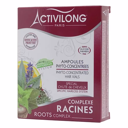 tested and approved, Phytorepair. Enriched formula. Acti Vilong Roots Treatment is formulated to help you combat significant hair loss. This presents four examples, one with a phyto concentrate against hair loss. Activates pear-papillary exchanges to stimulate hair growth. The use of this special hair root treatment accelerates the keratin biosynthesis so that the hair grows better and is regenerated. Apply to the scalp and massage gently. Wash thoroughly if it comes into contact with the eyes.