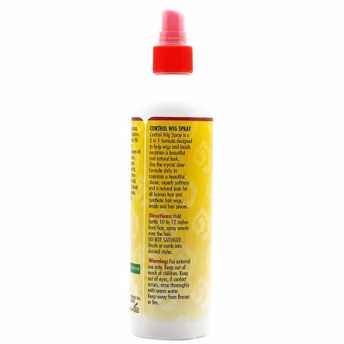 – African Essence Control Wig Spray helps to maintain beautiful sheen, superb softness and a natural look all human hair and synthetic hair wigs, braids and hair pieces