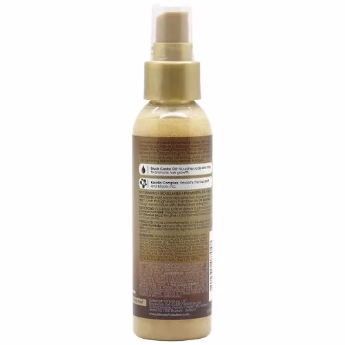 This Anti-Humidity Heat Protectant provides 400°F heat protection and guards against heat damage. Specially crafted with a keratin complex, this lightweight formula blocks humidity, seals in shine and keeps hair straight for up to 2 weeks or until next wash day. Great for blow drying, flat-ironing, wand curls, silk presses, straightening leave outs, weaves & edges Black Castor Oil: Nourishes scalp and helps to promote hair growth. Keratin Complex: Smooths the hair shaft and blocks frizz. No Parabens, Sulfates, Mineral Oil & Petrolatum Directions: Hold 6-8 inches away from hair, spray evenly. On damp hair, comb through evenly then blow dry. On dry hair, comb through evenly, follow with desired heat styling tool.