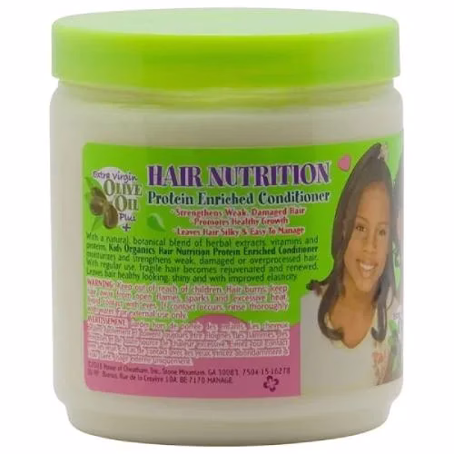 Kids Hair Nutrition Protein Enriched Conditioner. Rinse out or leave in conditioning treatment for weak, brittle hair. Enriched with nutrients that replenish hair and leave it silky, soft and manageable.