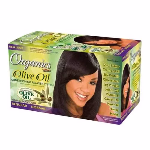 Africa’s Best Organics Olive Oil Conditioning Relaxer System with cold-pressed olive oil is a natural hair relaxer that does not only perfectly smooth the hair but also nourishes and keeps it silky soft.