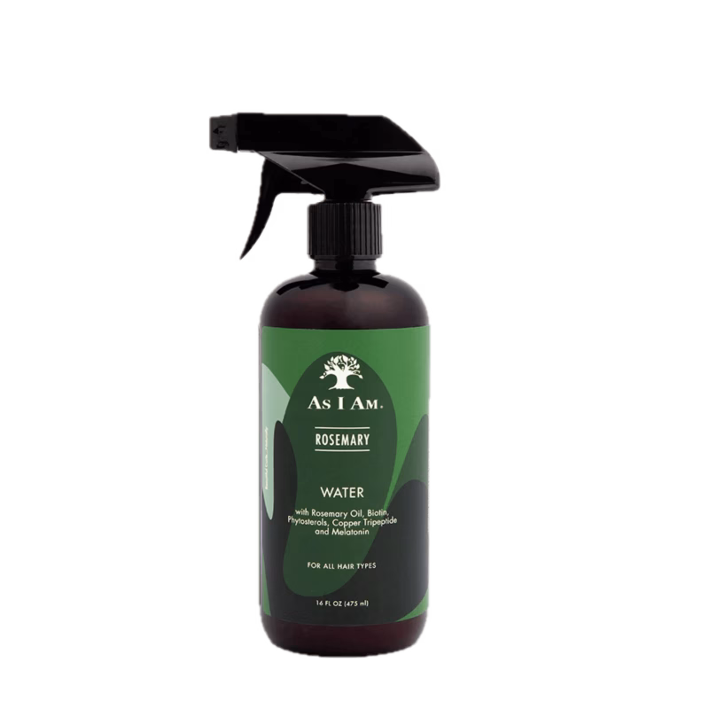 Le spray ROSEMARY WATER de la marque AS I AM aide à renforcer les cheveux tout en hydratant le cuir chevelu.