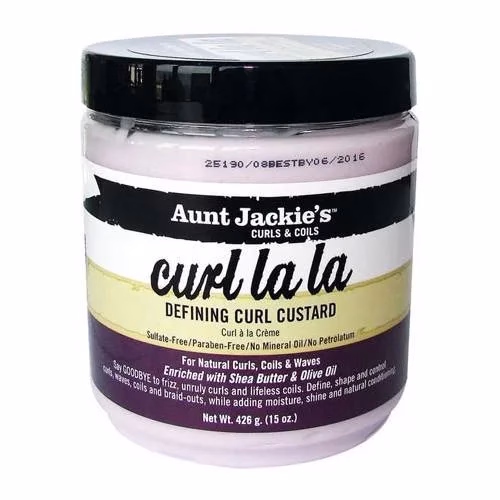 Aunt Jackies Curl La La Defining Curl Cu stard Delivers long lasting control and definition to curls, waves, coils, frizzy hair and braid outs. Moisture rich and blended with natural ingredients for healthier looking and feeling ringlets, curl la la wont cause build up, flake or l eave hair feeling stiff and dry.
