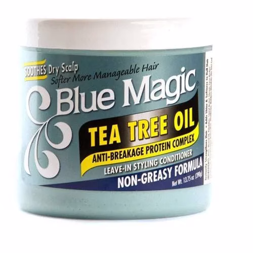 Blue Magic Tea Tree Oil Leave in Conditioner. brand new leave-in conditioner with a non-greasy formula and anti-breakage protein complex. Soothes dry scalp an d makes hair softer and more manageable. Instantly strengthens hair, adds shine and softness to dull hair. Water Based with coconut- and tee trea oil. Great to add structure, silky shine and bounce to thin and normal hair. Very popular with ladies.