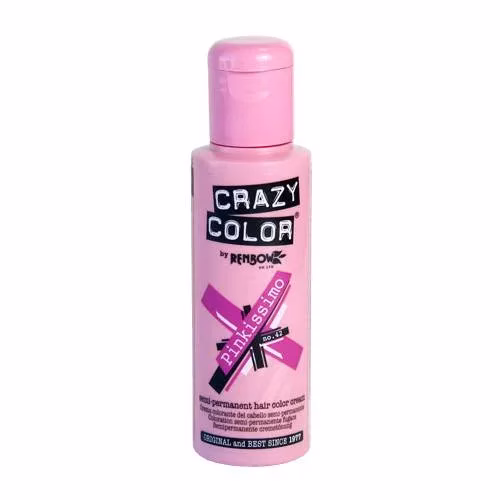 Semi Permanent Hair Colour. Crazy Color was launched in 1977, in the midst of the punk rock explosion and has been loved worldwide ever since. The heart of the brand has been kept pumping by its loyal following and cult status. n every iconic pink bottle comes a colour that will rocket your world. Vamp it with Fire or Amplify with Pinkissimo, Crazy Color has 27 colours mostly for the fearless but there is also a couple for the fainthearted.