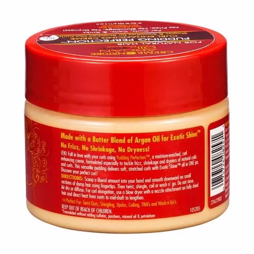 No frizz, no shrinkage and no dryness! Fall in love with your curls with Pudding Perfection, a moisture-enriched, curl-enhancing cream specially formulated to combat the frizz, shrinkage and dryness of natural spirals and curls. This versa tile pudding delivers soft, stretched curls with Exotic Shine in ONE glass. Di scover your perfect lock!
