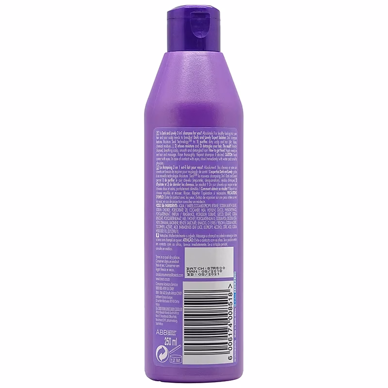 Dark and Lovely 3 in 1 shampoo gives plump, thick hair. Gently cleanses and moisturizes the hair. This makes it easy to comb the hair. Ideal for frizzy, colored or blow-dried hair. Dark & Lovel y 3 in 1 Shampoo used to be called Dark & Lovely Moisture Plus Conditioning Shampoo and has the same ingredients. This shampoo has an advanced combination of natural ingredients and with improved polymers. Your hair becomes smooth, silky and volume.