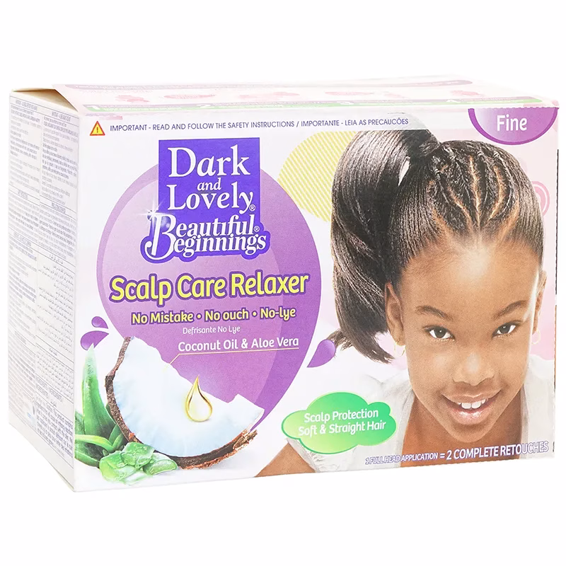 Dark and beautiful beginnings Gentle just no-lie. Lye-free for children with coconut oil moisturizer for fine hair types.
