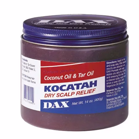 DAX Kocatah dry scalp remedy smells of smoked, contains coconut and tar oil, and actually helps within a few days for an itchy scalp.