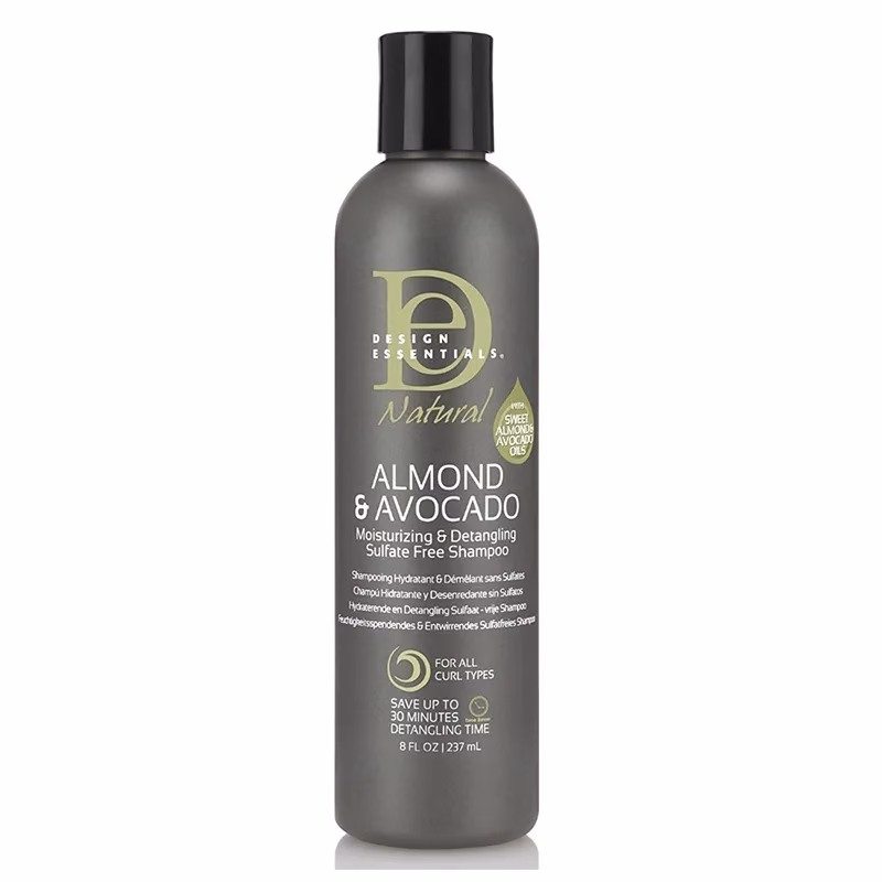 Design Essentials® Natural Almond & Avocado Moisturizing & Detangling Sulfate-Free Shampoo infused with nourishing botanicals to hydrate, soften, and detangle, is a gentle cleansing solution to rid the hair of build-up without stripping hair of natural oils. Experience a creamy lather, even on your first wash, resulting in each strand feeling soft, manageable, and noticeably hydrated.