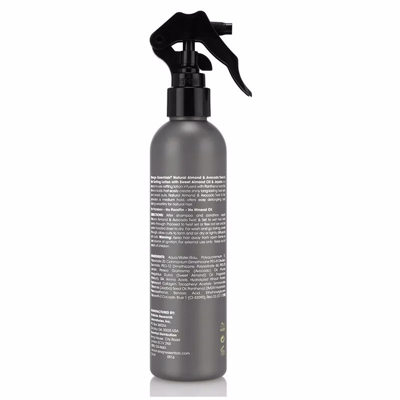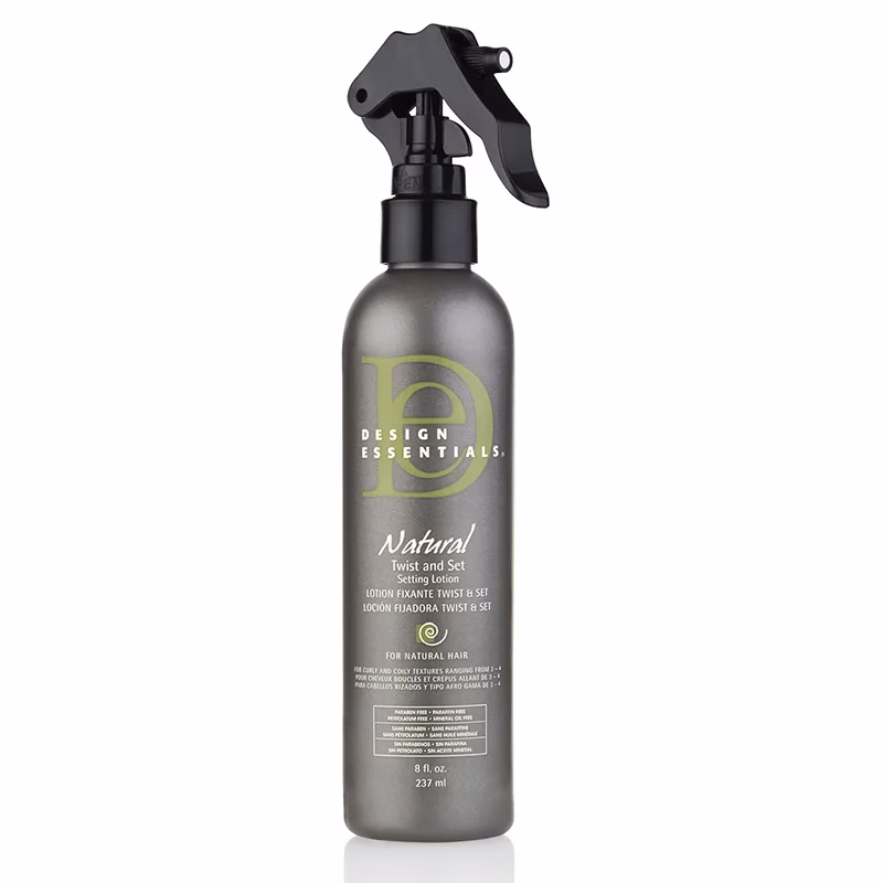 Design Essentials Natural Twist and Set Setting Lotion is a ready-to-use fixative lotion that is enriched with plant substances, vitamins and proteins to nourish, moisturize and give it a brilliant shine. This quick-drying formula offers a medium amount of long-lasting rotary sets and braids.