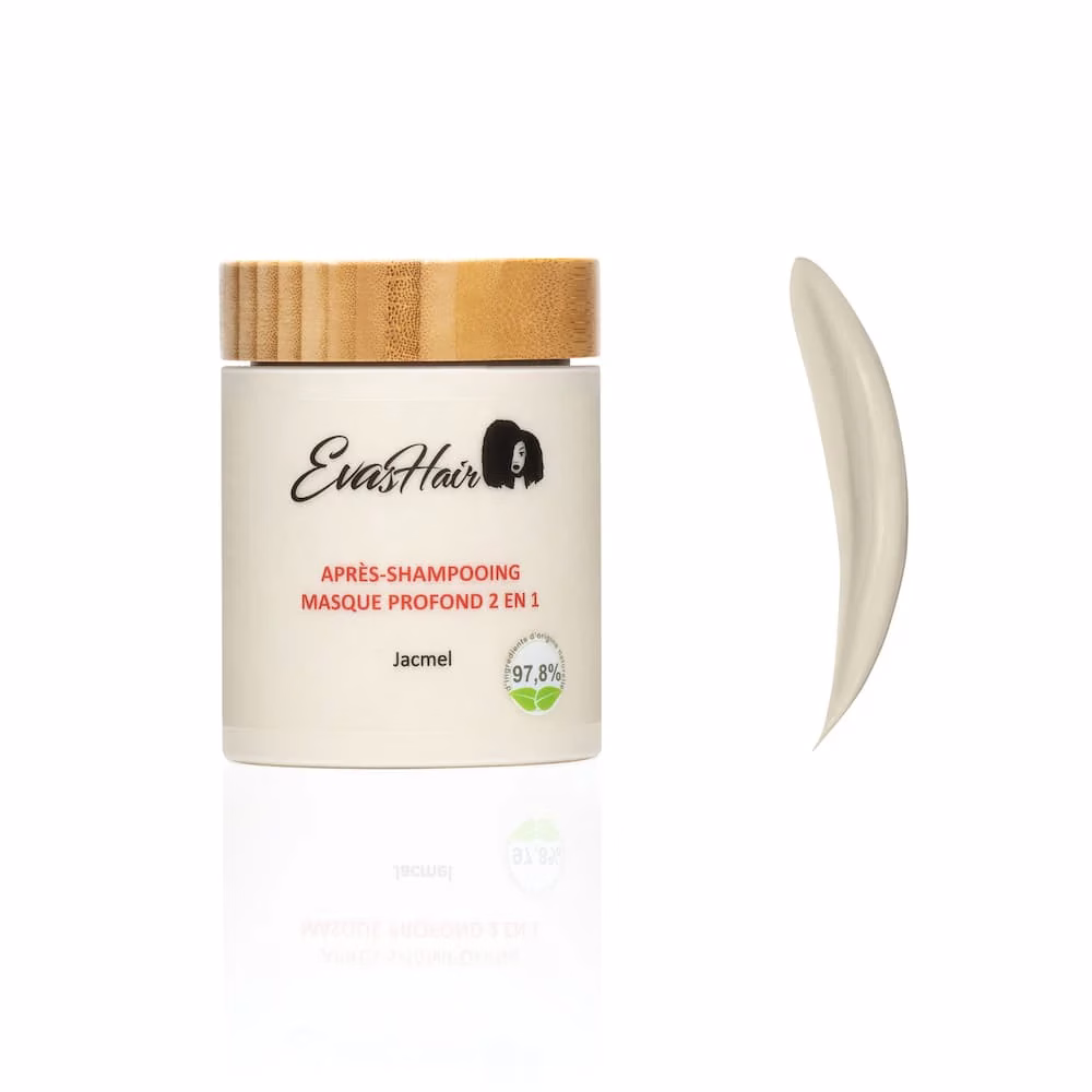 L’après-shampooing Masque profond 2 en 1 Jacmel est un produit multifonctionnel enrichi en huile de ricin, en protéines de pois, en miel. Le phytobioactif HAIRILINE est un anti-chute naturel et révolutionnaire qui protège la santé des cheveux en agissant sur le microbiote du cuir chevelu. Cet après-shampooing permet de restaurer l’hydratation, la souplesse et l’éclat des cheveux après le shampooing. Ce produit aide notamment à réparer les cheveux endommagés et facilite le démêlage.
