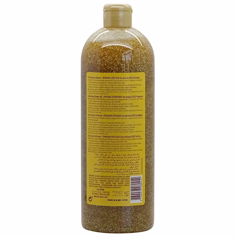 - GOLD SHOWER GEL FORMULA: is enhanced with an invigorating scent of Apricot Seed Powder that promote a rich foaming action to gently soften and revitalize tired, stressed skin. Its glamorous and delicate sensual fragrance triggers a feeling of well-being and freshness, all day long.