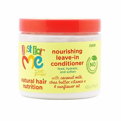 Just For Me Natural Hair Nourishing Leave-in Conditioner Formulated with Coconut Milk, Shea Butter, Vitamin E and Sunflower Oil, for enhanced moisturizing and conditioning.