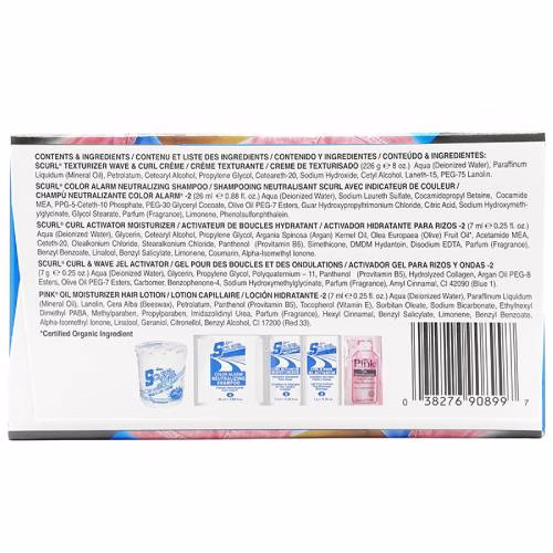 Glycerin, Sodium Carbomer, Propylene Glycol, Panthenol, Disodium EDTA, Imidazolidinyl Urea, Methylparaben, Benzophenone4, Oleth20, Fragrance (Parfum), FD & C Blue No. 1 (CI 42090), Ext. D & C Violet No.2 (CI 60730).PINK Oil Moisturizer Hair Lotion 15ml/.5oz:Deionized Water (Aqua), Mineral Oil (Paraffinum Liquidum), Lanolin, Beeswax (Cera Alba), Petrolatum, Sodium Borate, Panthenol (VitaminB5), Tocopherol (Vitamin E), Sorbitan Oleate, Octyl Dimethyl PABA,