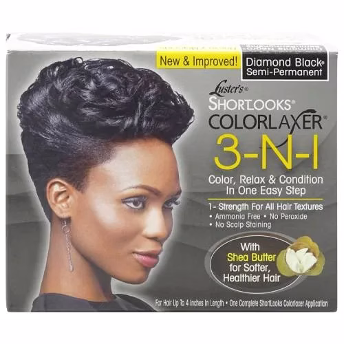Lusters Short Looks ColorLaxer 3 N 1 Semi Permanent, Diamond Black for a gent le semi permanent colour, silky straight hair, and patented conditioning in a on e step system. Achieve maximum straightness, fabulous colour and conditioning al l at the same time. Your hair feels healthy, looks healthy with beautiful shine and body. One Strength for all hair textures, for hair up to 4 inches in length. Ammonia free, no peroxide and no scalp staining.