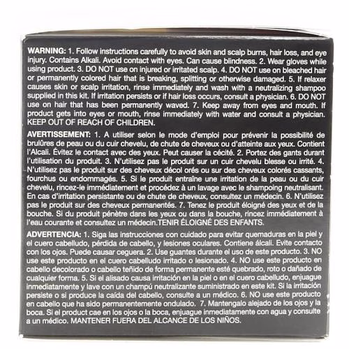 1. Follow instructions carefully to avoid skin and scalp burns, hair loss and eye injury. 2. Wear gloves while using product. 3. Do not use on injured or irritated scalp. 4. Do not use on bleached hair or permanently colored hair that is breaking, splitting or otherwise damaged. 5. If relaxer causes skin or scalp irritation, rinse immediately and wash with neutralizing shampoo. If irritation, persists or if hair loss occurs, consult a physician. 6. Do not use on hair that has been permanently waved. 7. Keep away from eyes and mouth. If product gets into eyes or mouth, rinse immediately with water and consult a physician. 8. Do not use hot combs or other heat-related implements before or during relaxer process. KEEP OUT OF REACH OF CHILDREN.