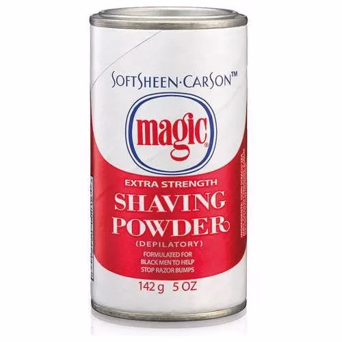 Magic Extra Strength Shaving Powder is an extra strength shaving powder (depilatory) formulated especially for black men to help stop razor bumps. Provides a clean, razorless shave. Extra Strength formula for coarse beards.