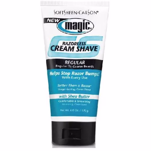 Magic Razorless Cream Shave formulated to help stop razor bumps and give a closer shave than a razor. With a light fresh scent. Works in 4 minutes and lasts for 4 days. Regular Strength formula for normal beards.