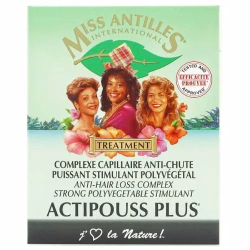 Miss Antilles Actipouss Plus. Anti-hair loss complex strong Polyvegetabl e stimulant in the tropical medicinal herbs: specially conceived to treat the problems of capillary deficiency, the complex ACTIPOUSS PLUS is formula ted with concentrated natural active principles chosen as their optimal performances. Actipouss Plus is a serum antifalls polyvégétal super activated con ceived to stimulate the activity of roots and strengthen the hair by a massive contribution of plants, vitamins and specific trace elements. Powerful regenerato r of the scalp and the roots, it establishes the ideal product of prevention and care of any types of falls of hair, that they are diffuse or located. &nbs p;