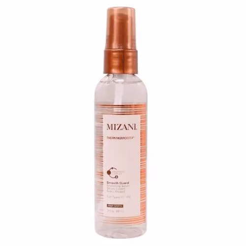 Lightweight and protective, MIZANI ThermaSmooth Smooth Guard Serum is a heat protection serum that protects against heat styling damage and makes the use of heat tools easier by providing extra glide for easier handling. ThermaSmooth is MIZANI’s salon-exclusive, synergistic thermal straightening system with which hair can be repaired, protected and straightened in four simple steps. With MIZANI’s exclusive C3 smoothing complex made from coconut oil, ceramides and cationic polymers, ThermaSmooth Smooth Guard Serum is the third step in the system and offers weightless protection for a long-lasting, frizzy and smooth style. Light, Recessed heat protection serum buffers against heat styling damage and facilitate the use of heat tools by additional sliding for easier handling. The advanced C3 smoothing complex with cationic polymers is designed to protect and buff while hair is being straightened.