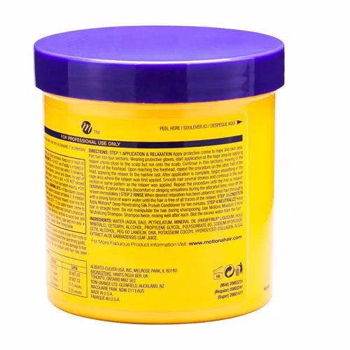 Motions Oil Moisturizer Hair Relaxer professional moisturizing relaxer system that straightens, conditions and softens hair while removing unwanted curl and wave from the hair. Contains Triple Hydration Complex (THC) A hydrating blend of moisturizers that provide extra moisture to combat dryness. Minimizes dryness, dullness and breakage. No Mixing, ready to use formula for fast and consistent relaxation.