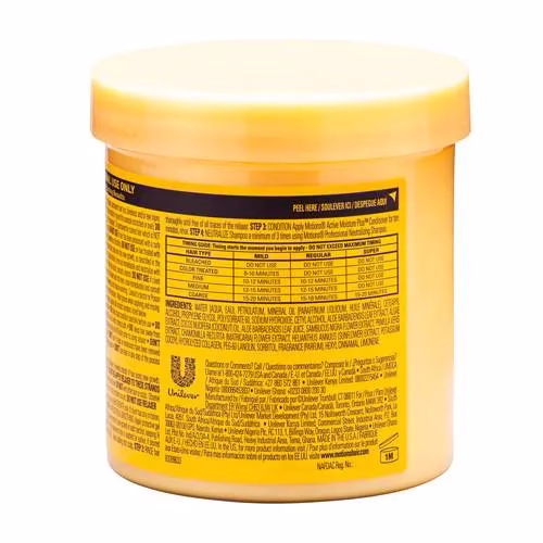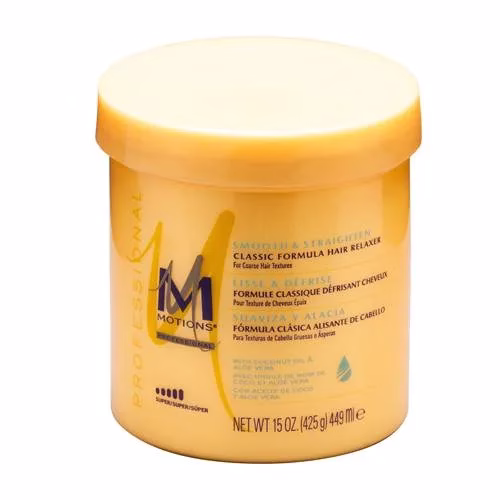 Formulated for relaxer-resistant, coarse, non-porous hair, Motions Super Hair Relaxer conditions as it re laxes.
