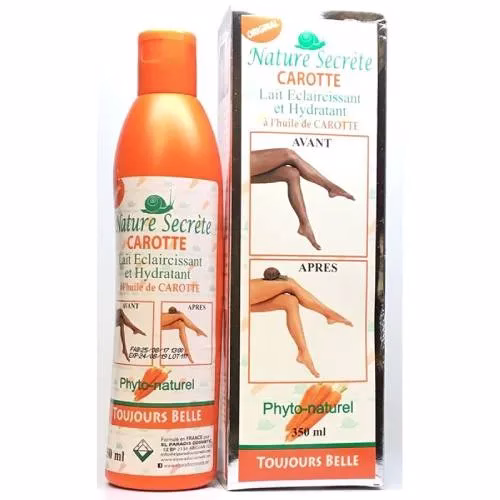 Lightening moisturizing lotion with carrot oil. Nature’s secret with carrot oil and snail slime brightens tired skin tones. It will fade spots quickly and actively combat emerging hyperpigmentation 10 days after daily use